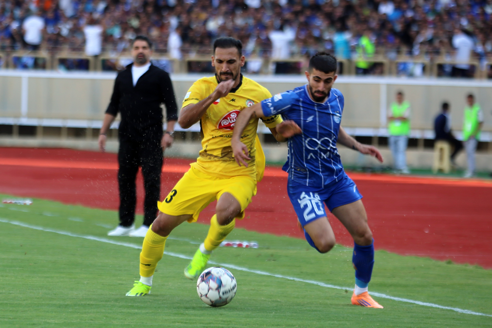سرمربی آبی‌ها با کمک اول مسابقه من‌ تو‌ من کرده و لحظه‌ای او را رها نمی‌کرد. پیرمرد پرحاشیهٔ آبی‌ها با هر سوت داور، خشم خود را بر سر کمک‌داور بی‌نوا خالی می‌کرد که البته از نظر آقای عرب‌براقی مورد مهمی نیست.